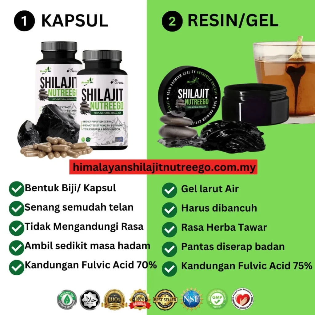 Resin adalah form shilajit yang pure dan tidak dicampur apa-apa. Kapsul pula telah dicampur beberapa bahan tambahan dan dibuat penambahbaikkan.